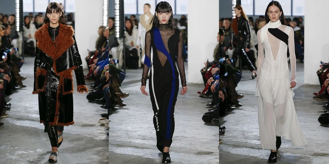 This was Proenza Schouler’s last show at New York Fashion Week, and the brand will soon take up residence at Paris’ Haute Couture week instead, a la Vêtements. Their AW17 show was the perfect farewell to the city, described by the Proenza Schouler boys as “our representation of New York”. Designers Jack McCollough and Lazaro Hernandez invited their audience into an abandoned office space, where spectators were kept on their toes with a sometimes-tense and sometimes-jazzy soundtrack. They showcased their trademark exaggerated ruffled sleeves, with pleated maxi skirts, wrap around jewellery and boxy leather silhouettes, matched with dresses that were cut away at the hip. The clothes were at once streetwise and feminine, and the metallic leathers and graffitied latex harked back to the imagined futurism of the 60s, creating a disorientating combination of both old and new. The show spoke volumes of New York, a place that has so much going on, it is everything all at once.